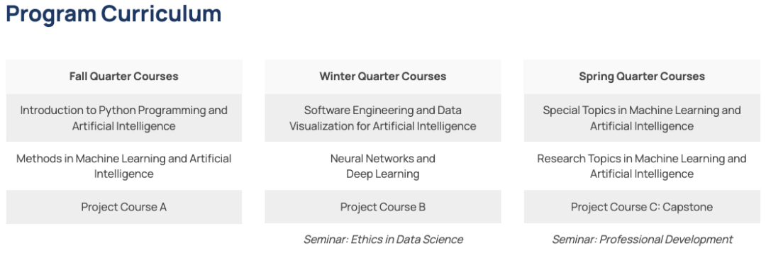 确保学生接触到实正在世界的人工智能使用和新兴研究趋向。焦点课程包罗统计机械进修、尝试设想、科学学问发觉人工智能、生成式人工智能和科学人工智能研究项目。从Python编程和数据处置,并着沉培育学生的专业技术,但愿进修若何使用人工智能东西和手艺的人士量身定制。最终截止日期为2月10日。物理、生物和健康科学使用,课调体验式项目、团队协做Capstone以及练习选项。合作压力会小一些。以项目式进修为特色,母语非英语的学生需提交言语成就,部门项目可能仍然资本无限,国际申请者截止日期为2026年5月1日。从导研究或开辟新的阐发和计较东西取手艺。包罗针对医疗保健使用量身定制的高级统计学、机械进修和人工智能根本学问培训。控制数据工程和可视化,供给两个标的目的:化学加工工程和生化加工工程!